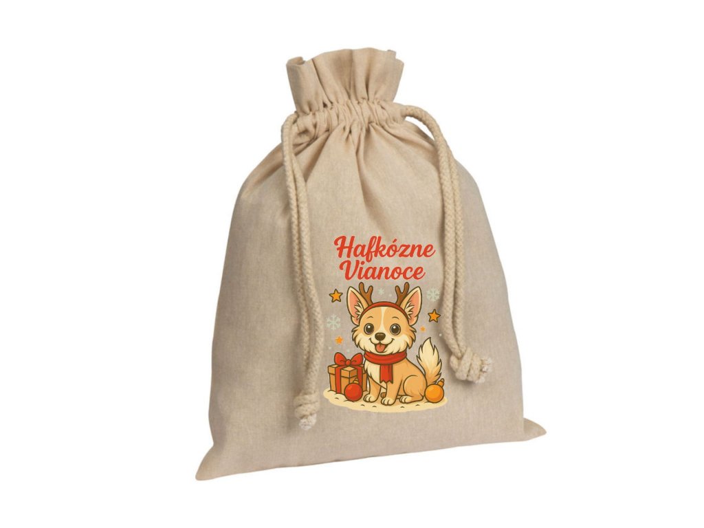 Plátené vrecko s originálnou grafikou, vhodné na balenie darčekov, pamlskov či psích pokladov.